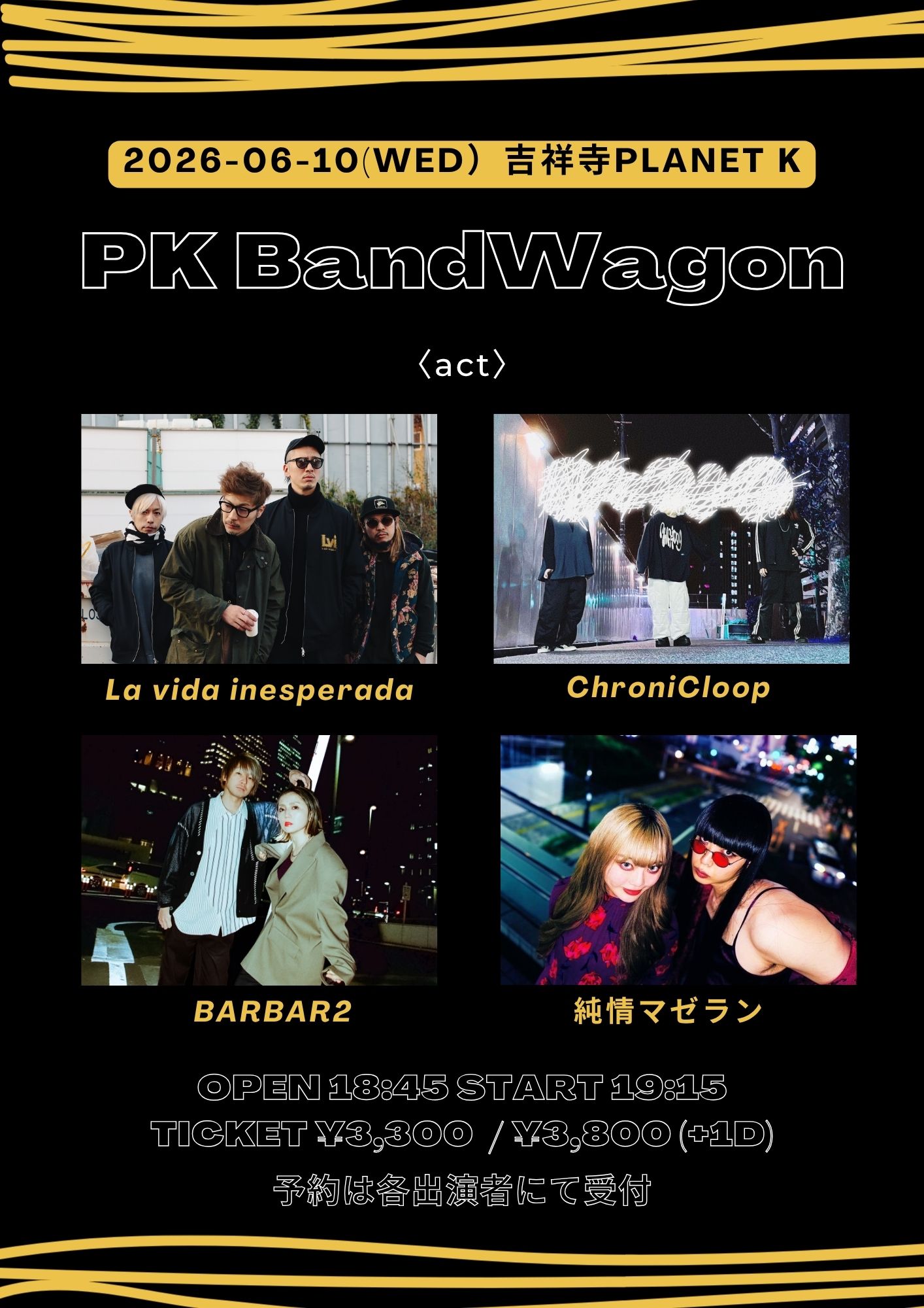 2026.04.19 « イベント一覧 吉祥寺PlanetK 6月10日(水) « 吉祥寺PlanetK PK BandWagon open 18:45/ start 19:15 ¥3300/3800(D代別途) <act> La vida inesperada BARBAR2 ChroniCloop 純情マゼラン チケット バンド取り置き予約 カレンダーに追加 Google カレンダー iCalendar Outlook 365 Outlook Live 詳細 日付: 6月10日(水)